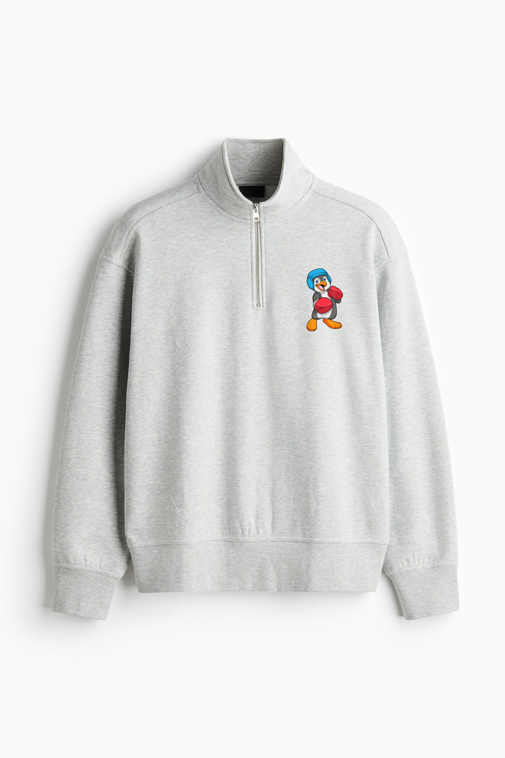 Stay cozy and stylish with our Penguin Boxing Boxer Gloves Loose-Fit Sweatshirt Collar Jacket Loose-Fit Sweatshirt Collar Jacket. Designed with a relaxed fit, ribbed collar, and soft fleece interior, this casual zip-up jacket combines comfort and modern streetwear appeal for any season.