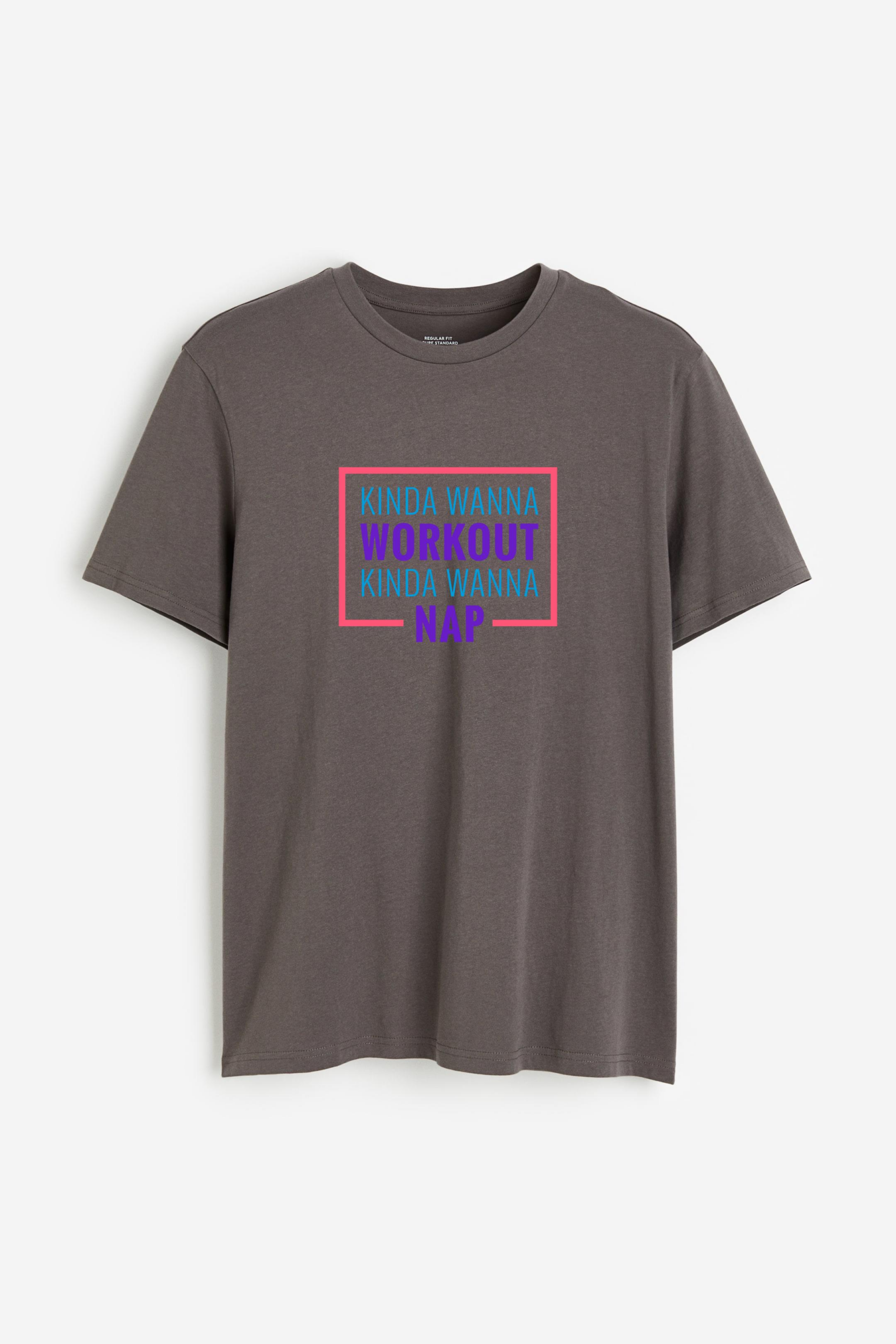 Workout Funny Phrase Kinda Wanna Cotton T-Shirt Cotton T-Shirt – Straight-Cut Soft Cotton Jersey Tee with Ribbed Crew Neck and Dropped Shoulders